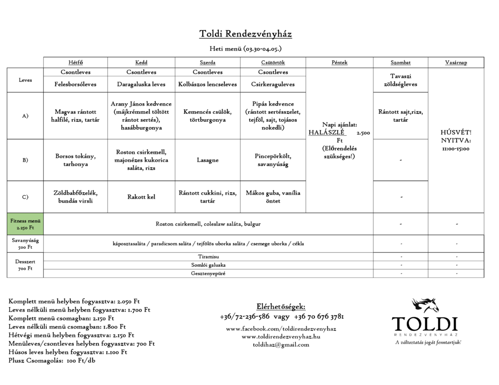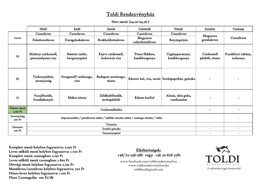 | Fitness menü (Hétfőtől Péntekig): 2.250 Ft |